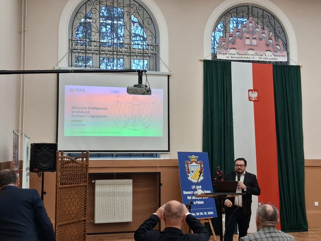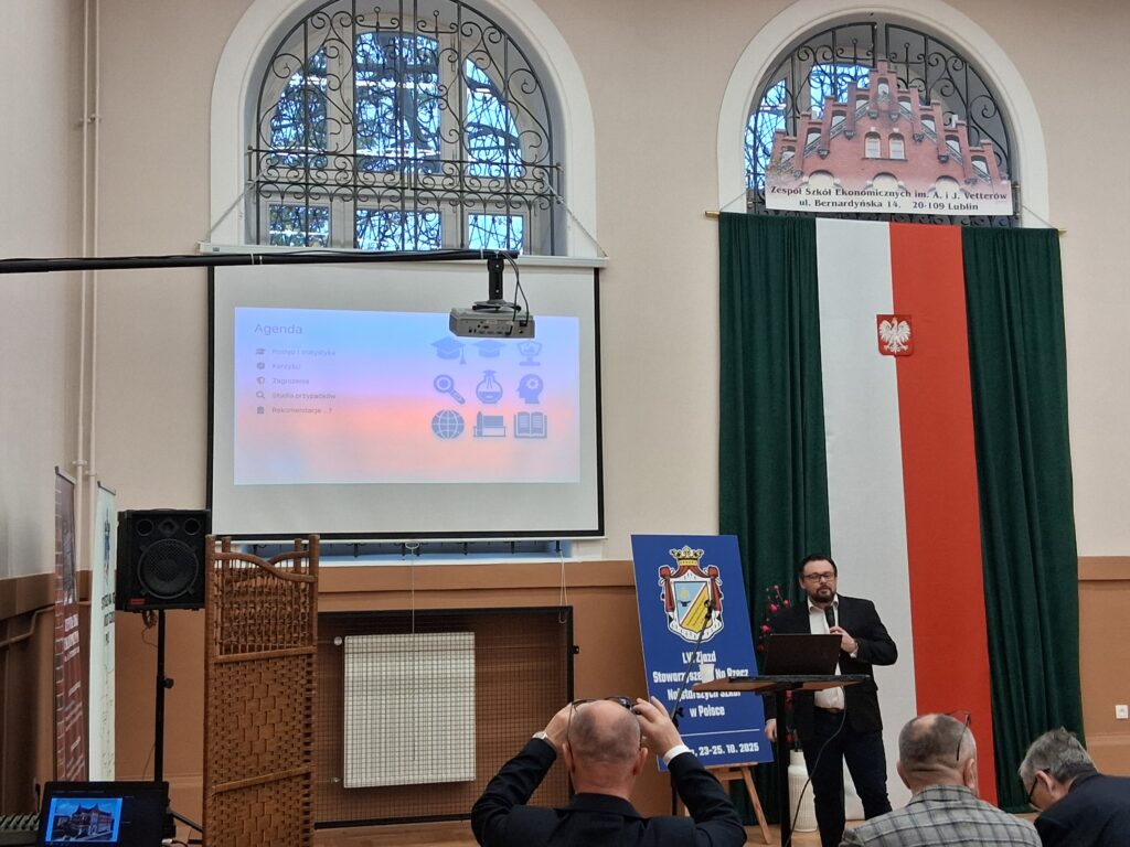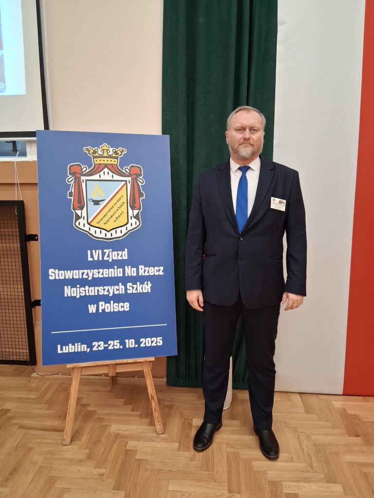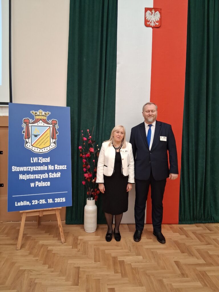 W dniach 24-25 października 2025 r. dyrektor Zespołu Szkół Ogólnokształcących i Zawodowych Mariusz Pisuła uczestniczył w LVI Zjeździe Stowarzyszenia Na Rzecz Najstarszych Szkół w Polsce. Tegoroczny zjazd odbył się w Zespole Szkół Ekonomicznych im. A. i J. Vetterów w Lublinie. Celem zjazdu była wymiana doświadczeń pomiędzy najstarszymi szkołami w Polsce. W trakcie spotkania odbył się wykład „Sztuczna inteligencja w edukacji – korzyści i zagrożenia”. Mieliśmy też okazję zwiedzić 120-letni gmach Szkoły, uczniowie kierunków: technik informatyk i technik hotelarstwa zaprezentowali pokaz umiejętności zawodowych. Na zjeździe ustalono, że kolejne spotkanie odbędzie się w Naszej Szkole w październiku 2026 r.